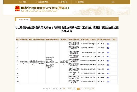 2021年,尖山区人社局牵头发起了各类用人单位(与劳动者建立劳动关系)工资支付情况部门联合抽查,对辖区内用人单位的工资支付情况进行部门联合抽查检查,配合部门为市场监管部门,通过“事中事后监管系统”随机抽取检查用人单位共计22家,目前,已完成全部检查工作并公示;尖山区人社局牵头发起了劳务派遣用工情况部门联合抽查,对辖区内劳务派遣用工情况进行部门联合抽查检查,配合部门为市场监管部门,通过“事中事后监管系统”随机抽取检查劳务派遣单位共计8家,目前,已完成全部检查工作并公示;