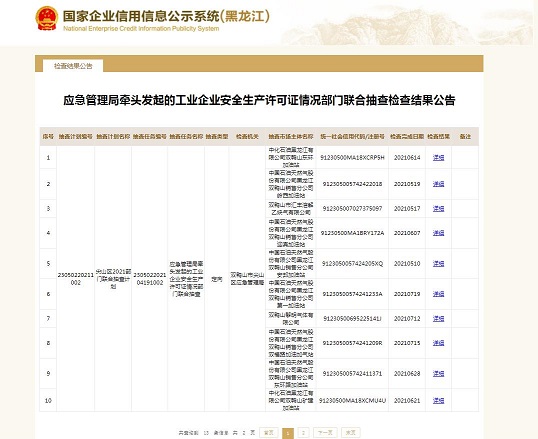 二是将执法人员库录入3人;录入企业共32家。目前按上级要求我局第一时间完成省局派发联合执法任务接收,于7月16日前将抽查检查结果录入双随机监管工作平台并公示;并将多部门联合抽查监管任务“尖山区2021年部门联合抽查计划”(13家危险化学品企业)派发完成,于7月30日前将抽查检查结果录入双随机监管工作平台并审批公示。