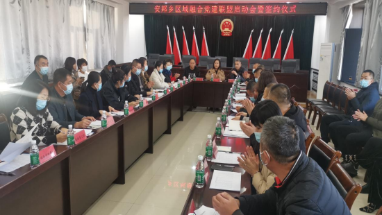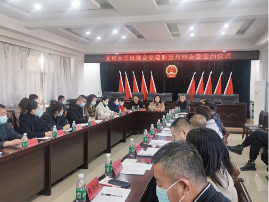 为响应党的二十大精神号召,为落实市委组织部、区委组织部《关于打造区域融合党建联盟的实施方案》的通知工作部署,促进党建与生产经营深度融合,进一步加强基层党组织建设,突出党建引领作用,更好地发挥基层党组织的战斗堡垒作用和党员的先锋模范作用,2022年11月16日下午, 在安邦乡举行区域融合党建联盟启动会暨签约仪式,安邦乡乡长刘博,党委副书记包永远,组织委员刘金沅,十二个村支部书记、部分村第一书记及集佳公司、选煤公司、供电公司等双矿集团十二家公司的党群工作部负责人,共同出席签约仪式。