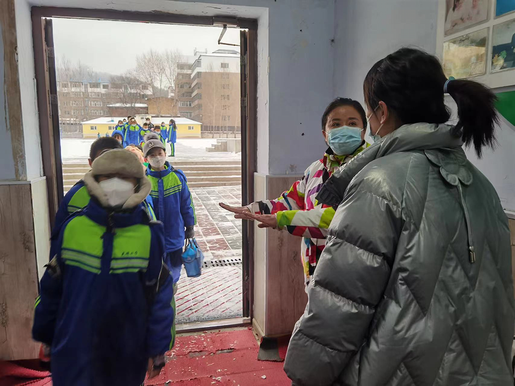 为坚决打赢疫情防控阻击战,从严、从细做好校园疫情防控工作,结合我校工作实际。我校在苏丽娜校长的亲自监督、检查、指导下及时落实并严格执行上级部门关于在校师生全程正确佩戴口罩工作,安排教师深入班级检查指导,为师生的安全筑起一道防线。