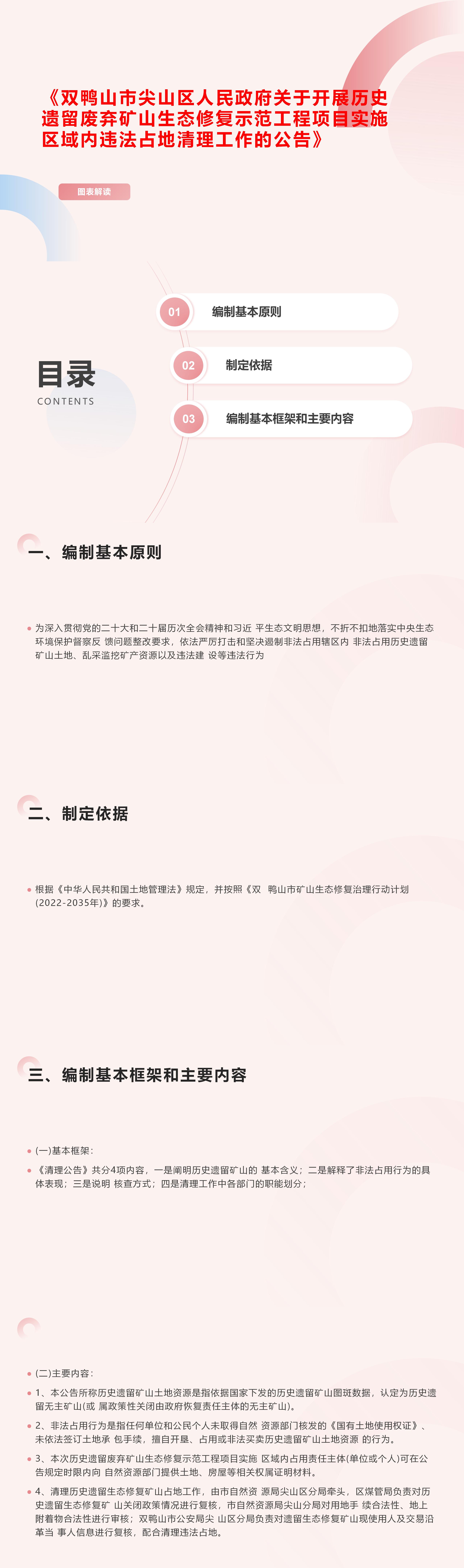 《尖山区人民政府关于开展历史遗留废弃矿山生态修复示范工程项目实施区域内违法占地清理工作的公告》图表解读