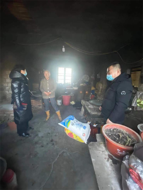 2月8日下午,区总工会主席李丽萍、副主席孙丽艳和建胜村党支部书记岳喜东看望了外地务工人员的家属,年逾七旬的付少林家中,两个离异的儿子均在外地打工,他们住在破旧的泥草房里,还要照顾两个上学的孙子,生活特别困难,当看到工会送来的米面油等生活用品时,连声说着感谢。农民工吕子军,其父亲小脑萎缩,丧失劳动能力,打工赚来的钱均用于给父亲治病,为响应国家号召,避免疫情传播,也为节省路费,他留在广东过年,工会对他父母的慰问让他倍受感动,通过电话表示好好工作,用自己的努力改变家庭现状,回报父母和社会。
