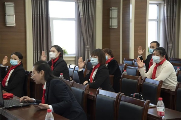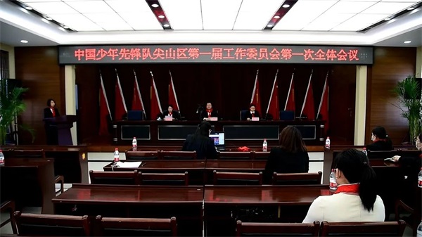 大会选举产生了中国少年先锋队尖山区第一届工作委员会,并在一届一次全会上,选举王振宇和杜娟为中国少年先锋队尖山区第一届工作委员会主任,实现了少工委双主任制,新当选的少工委主任进行了表态发言。