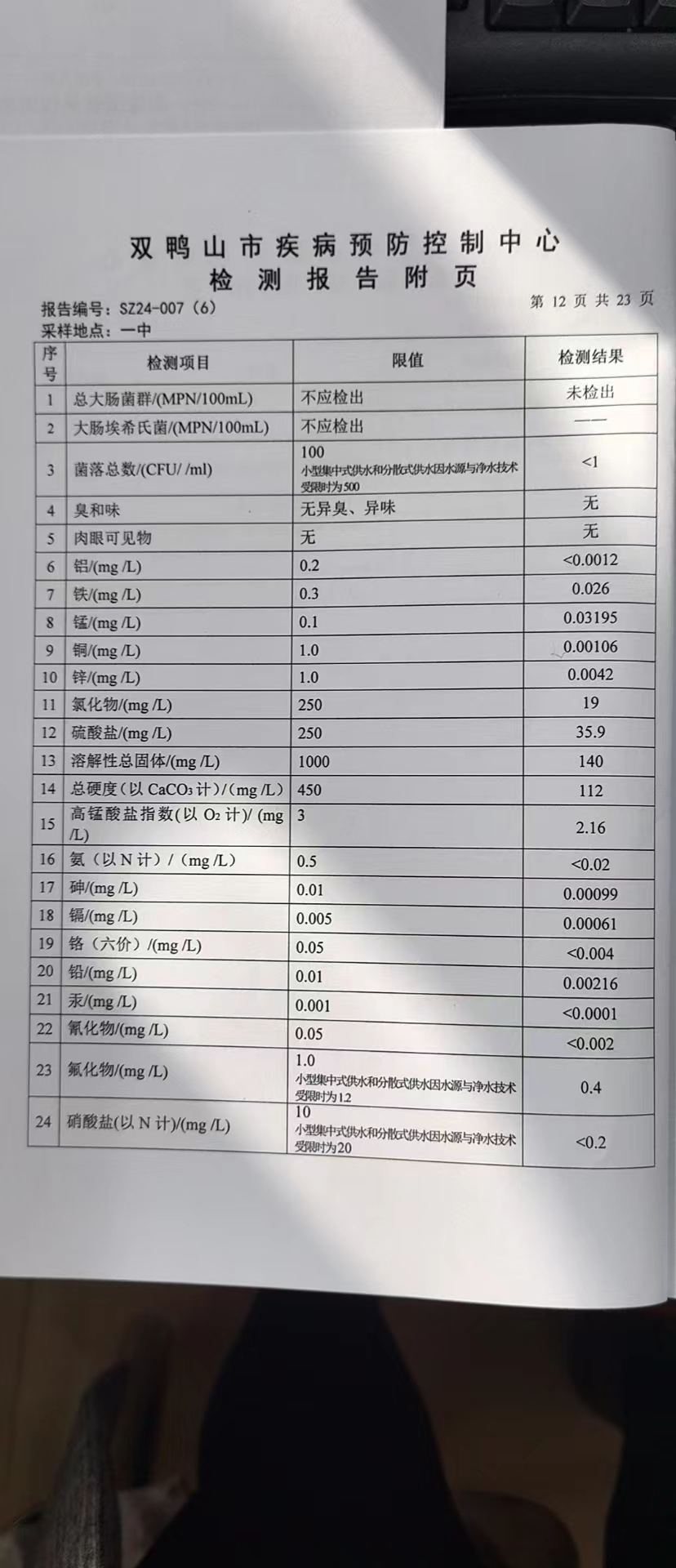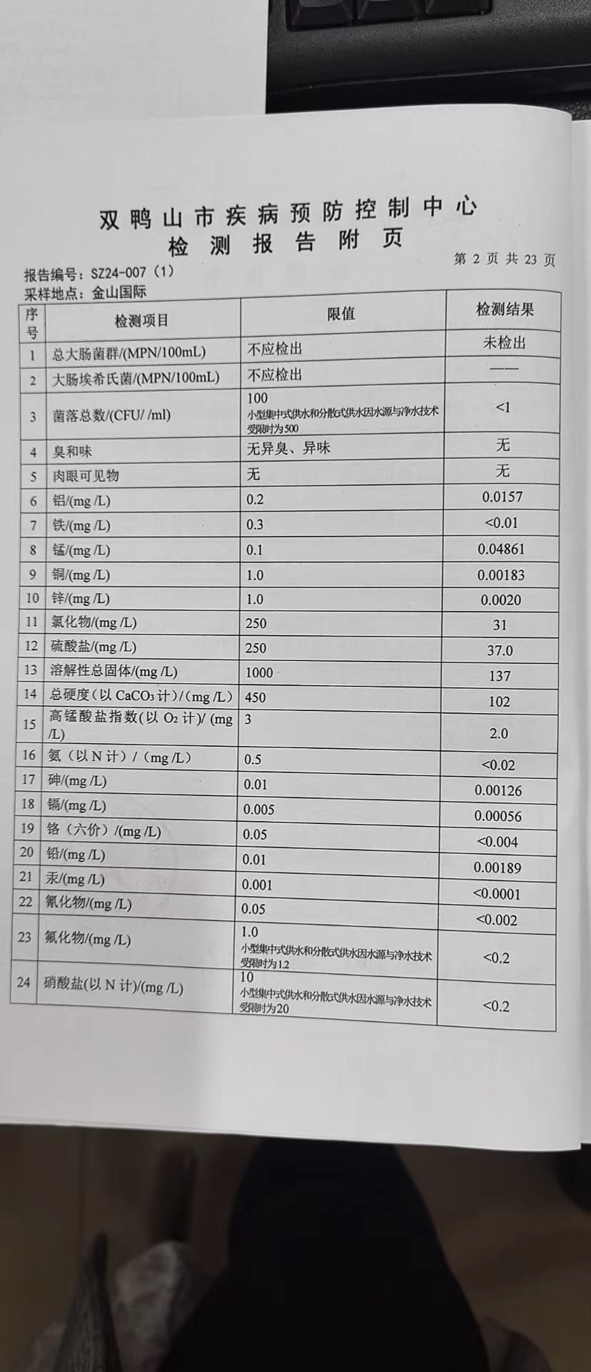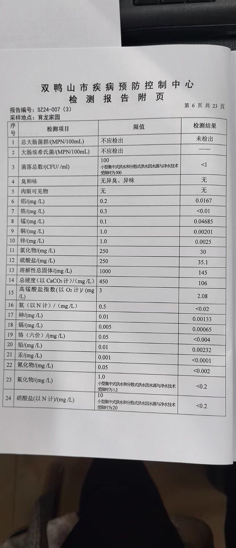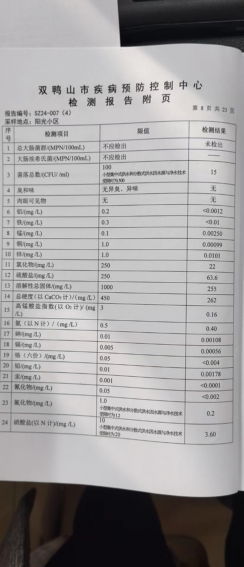 尖山区2024年第一季度水质公示