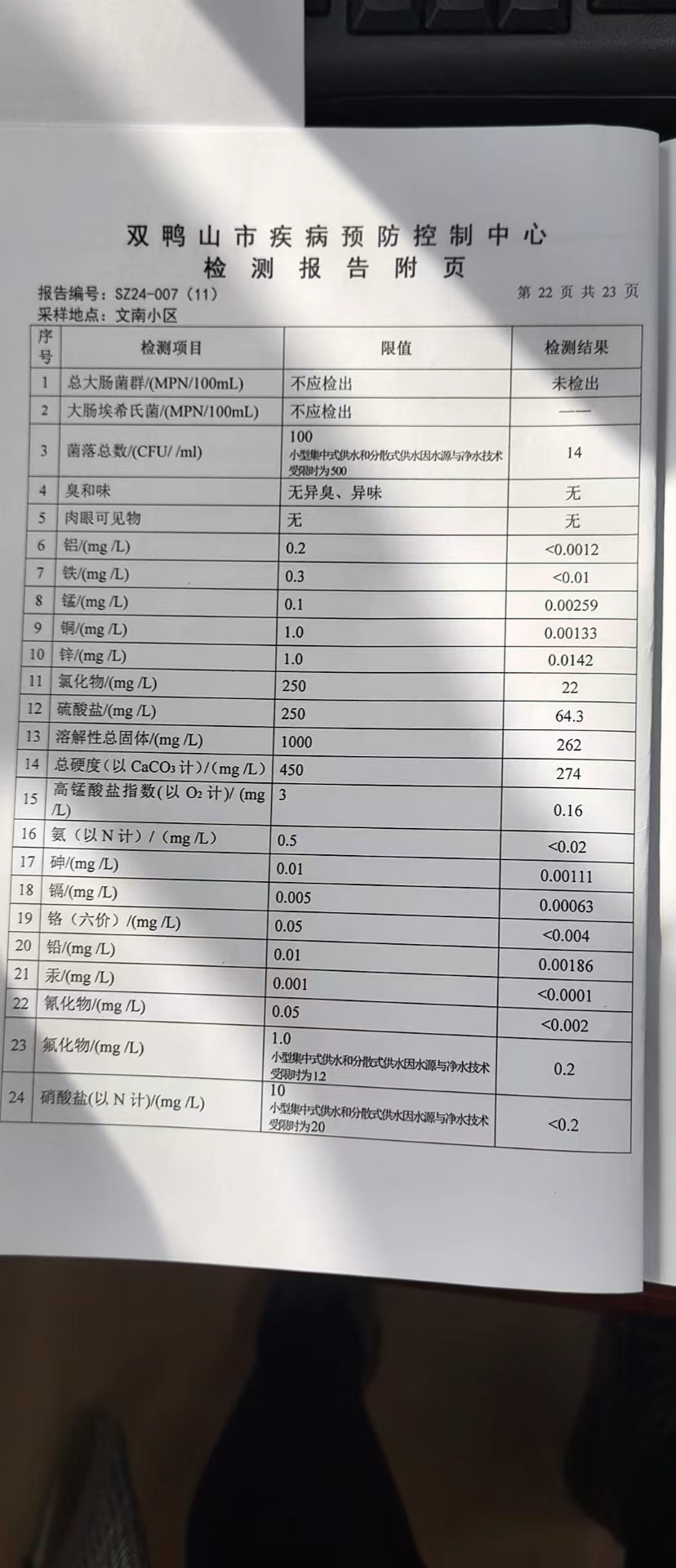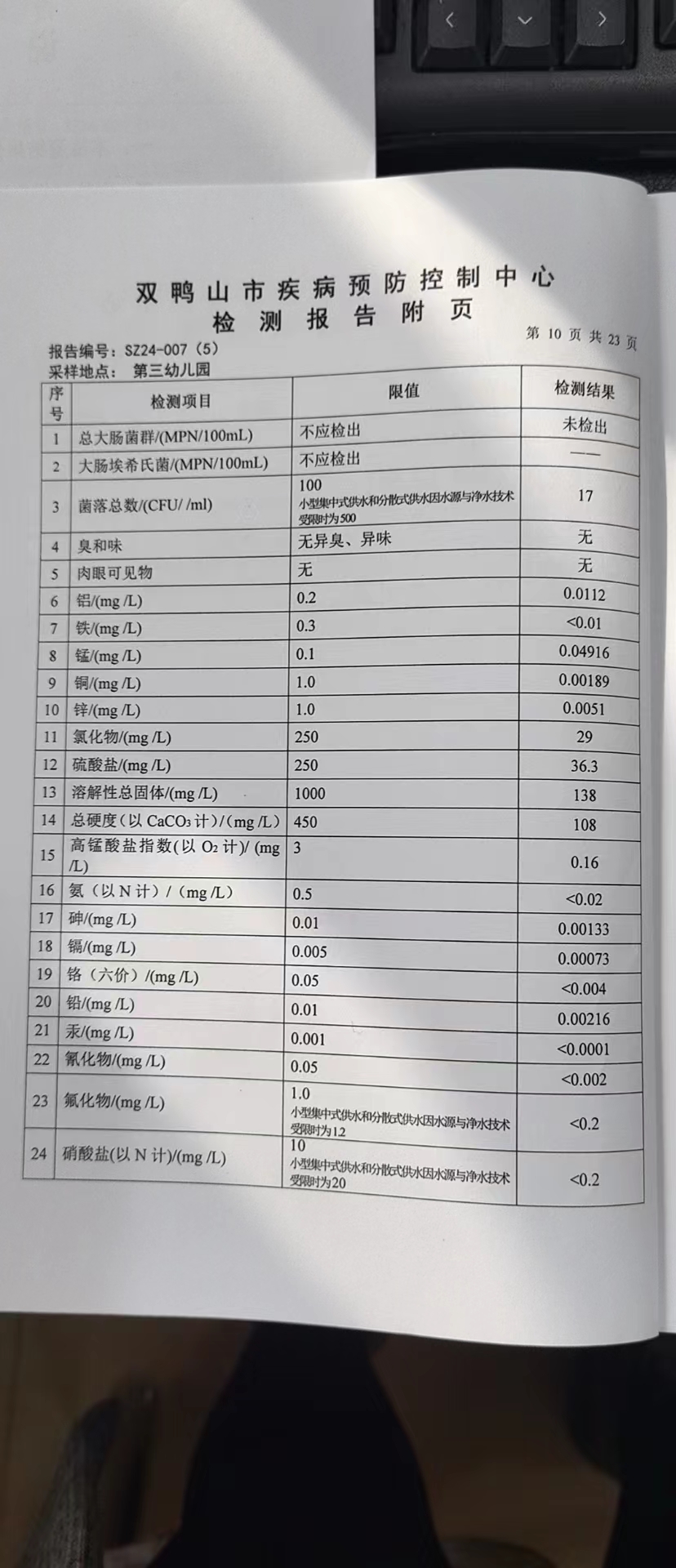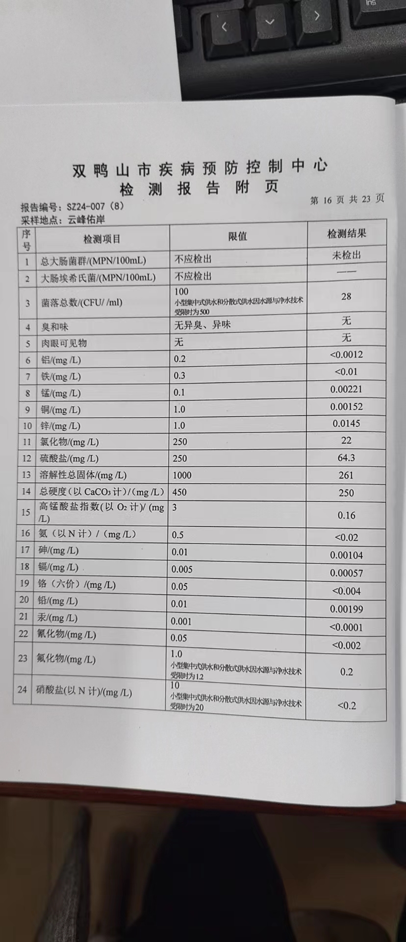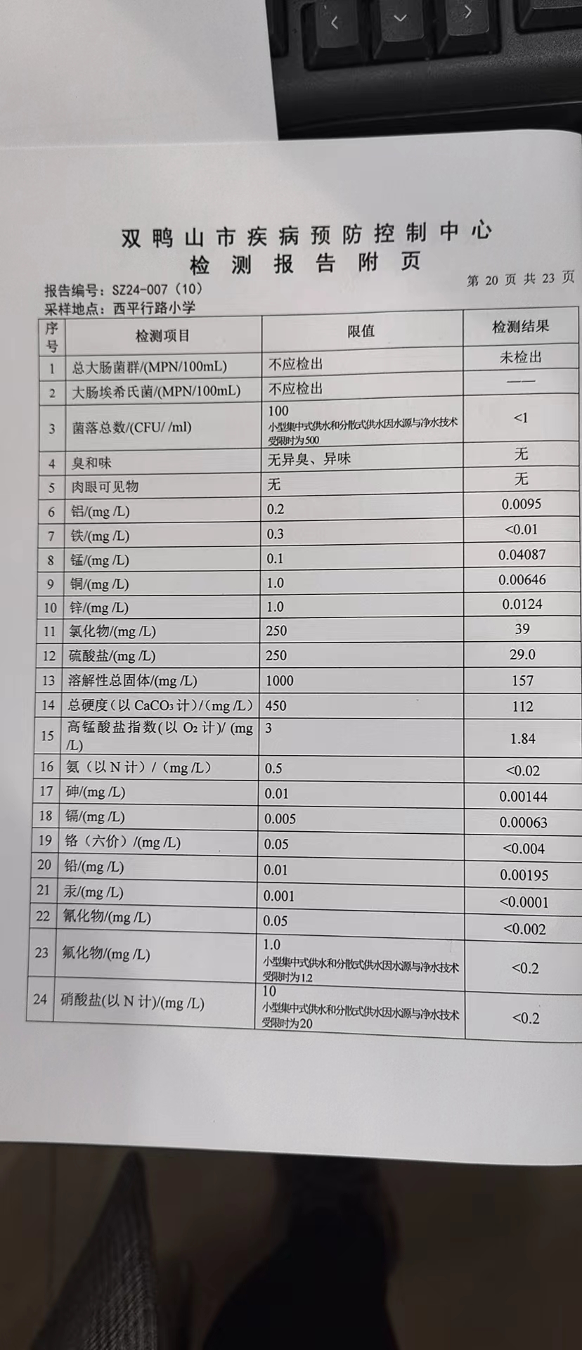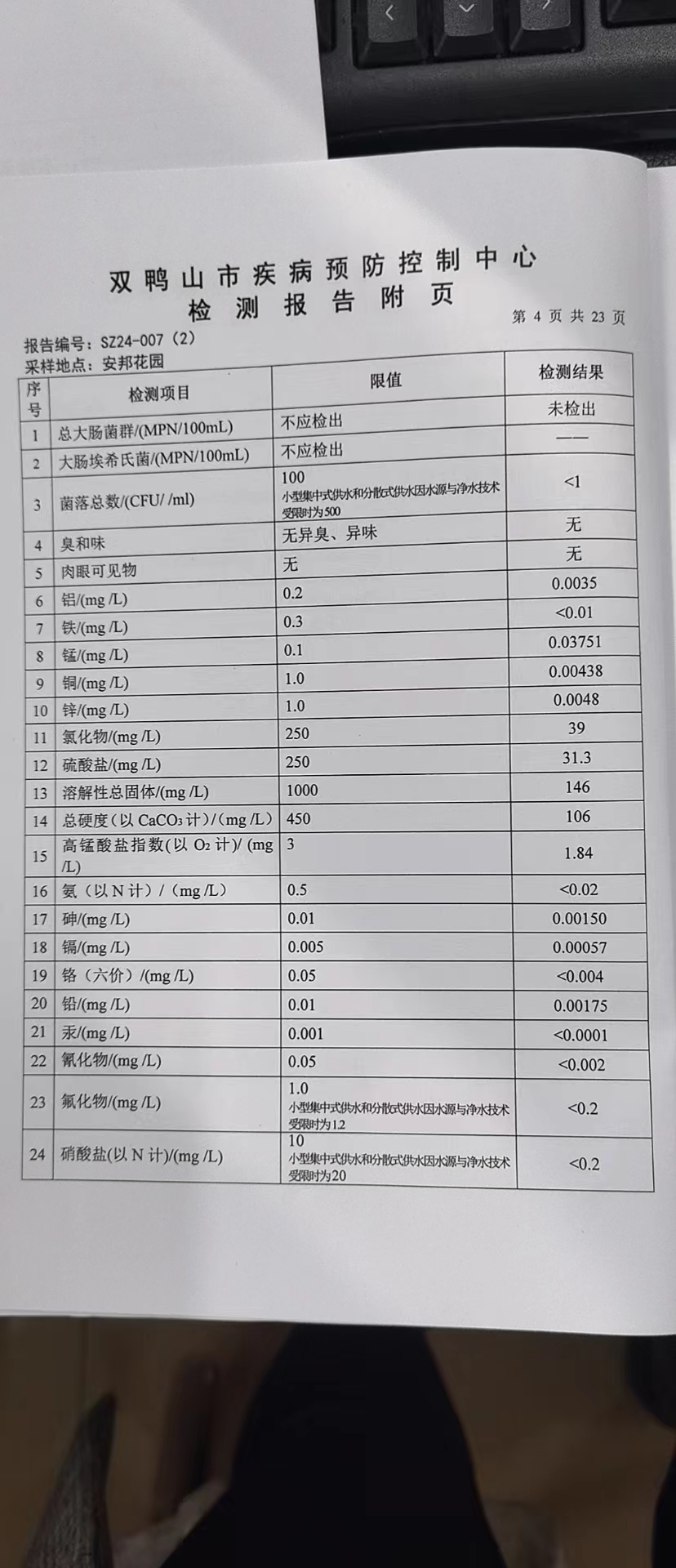 尖山区2024年第一季度水质公示