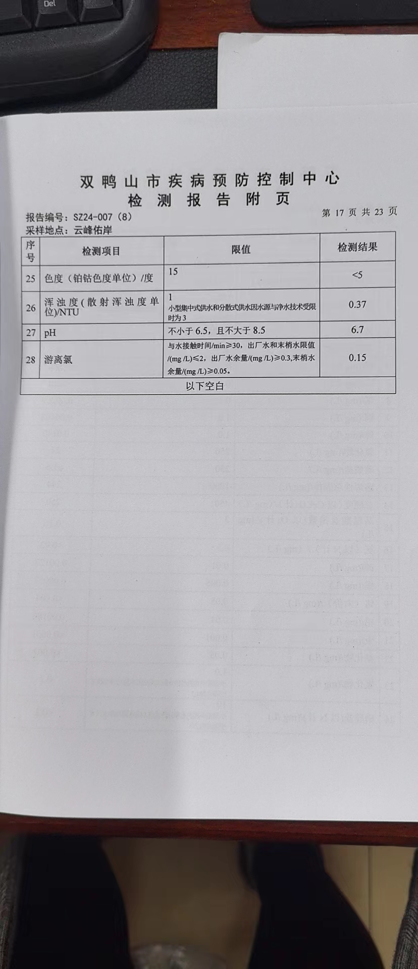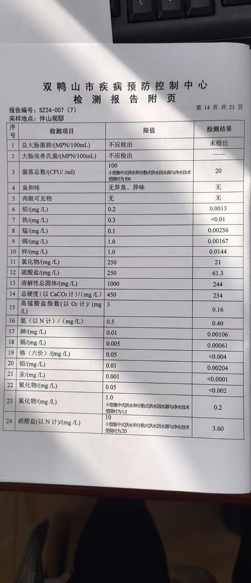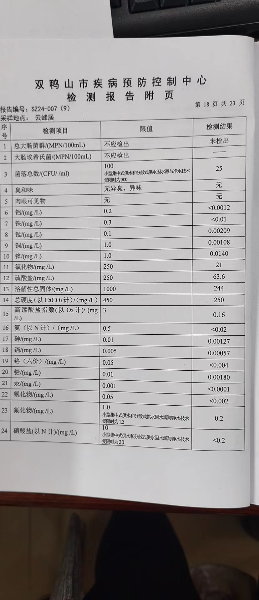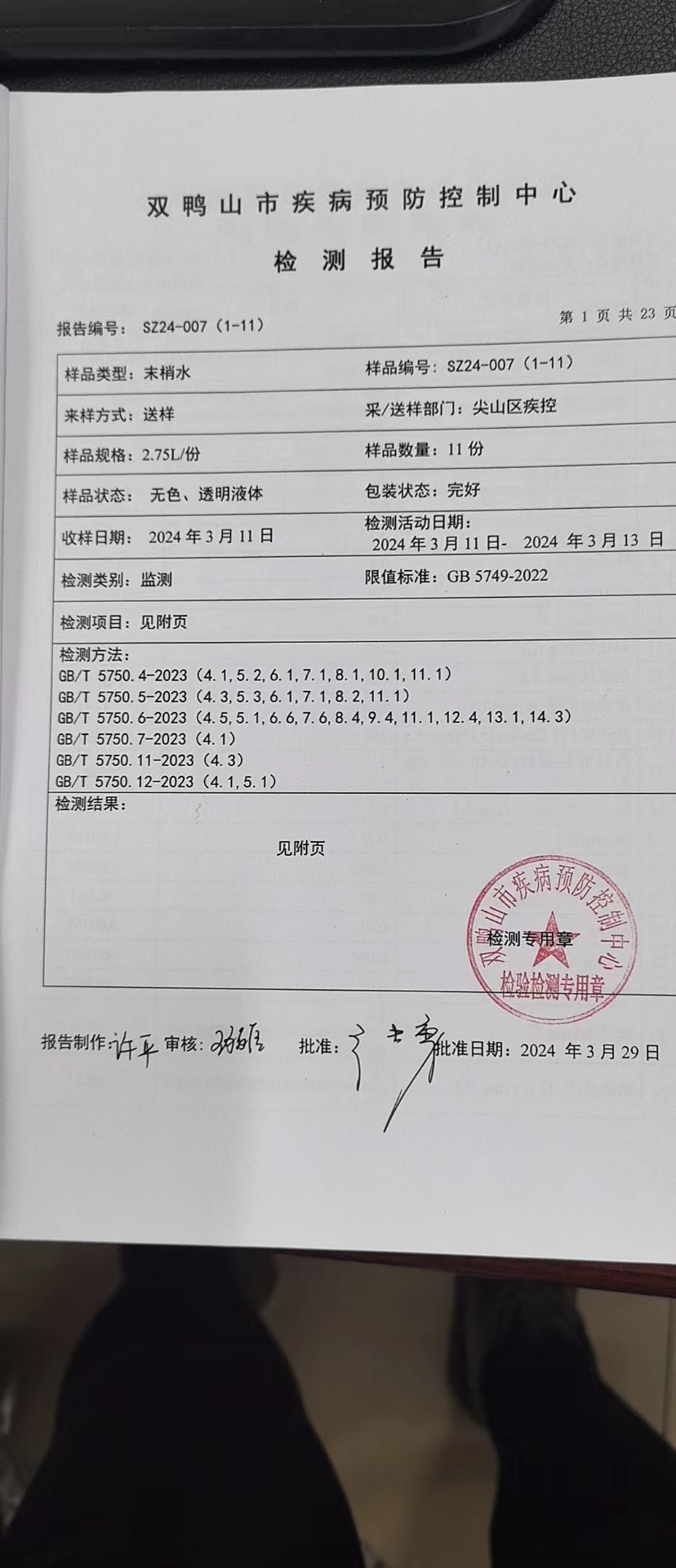 尖山区2024年第一季度水质公示