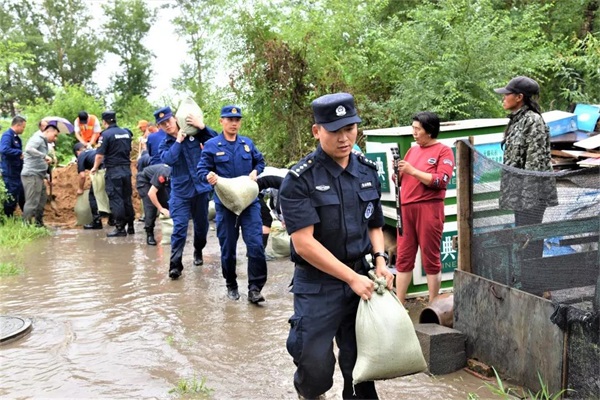 受连续降水影响,中心站街道办事处辖区内出现汛情,尖山公安分局、尖山消防大队及应急局等部门巡险情、搬沙袋,积极做好应急抢险救援各项工作,充分展现忠诚为民的情怀,并得到受灾群众的高度赞扬。