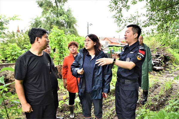 8月11日上午,区委书记赵彤,区委常委、组织部部长于海峰深入中心站街道办事处检查指导防汛救灾工作。