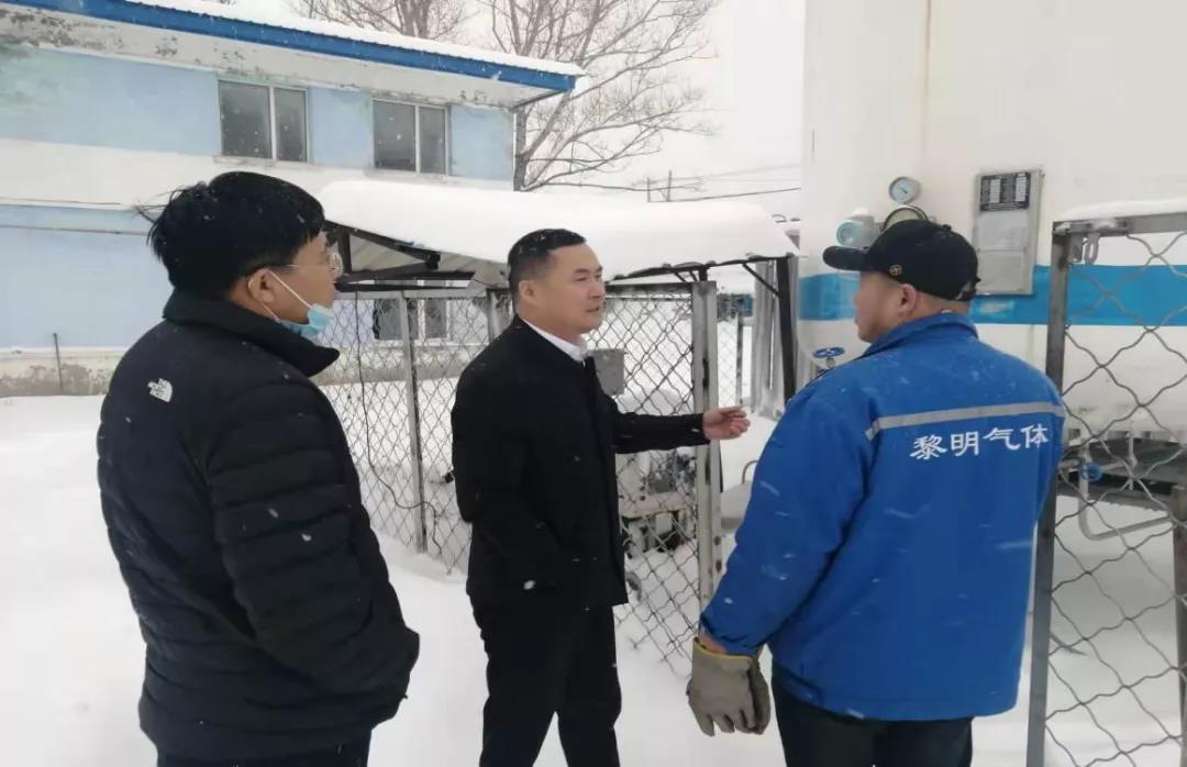 在黎明气体公司,王言印对黎明气体公司针对暴雪寒潮天气及时启动预案,危险品运输车辆全部停运,快速反应,有效应对,给予充分肯定。