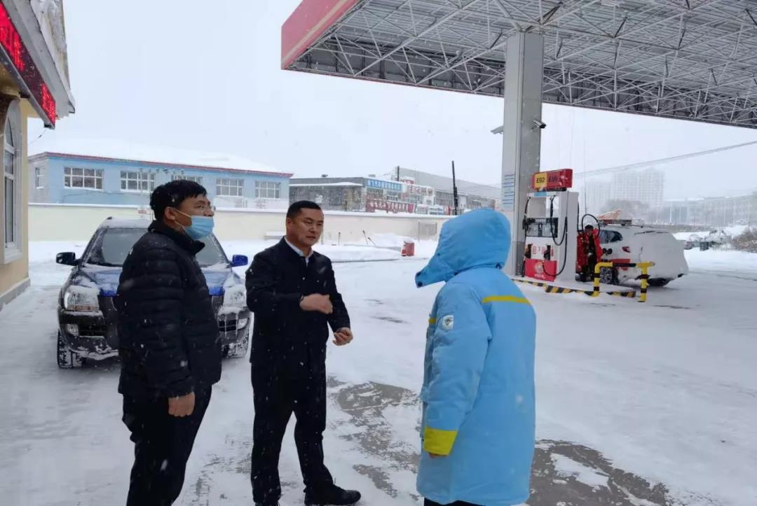 在中石油第二加油站,王言印强调,企业要做好站内加油车辆有效疏导,雪要随下随清,对罩棚顶部积雪要加强检查,及时进行清除,防止发生压塌事故。对突发事件要有效应对,确保遇到突发情况应对的了、处置得好。