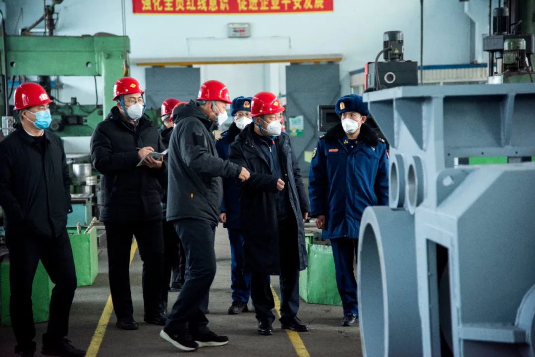 在新强设备,检查了生产车间、组装车间和产品存储间。王言磊强调,企业要认真落实企业安全生产主体责任,牢固树立安全生产意识,建立健全安全生产责任体系和各项规章制度,全面排查安全隐患,做好风险点闭环管理,打好主动仗,确保安全生产万无一失。