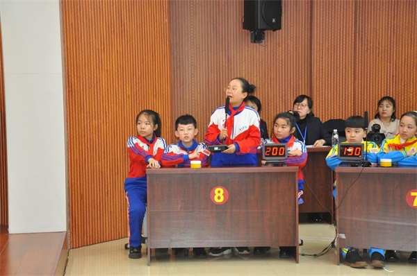 必答题环节中,各队选手们沉着应答,竟显渊博知识;抢答题环节,学生积极踊跃,各显身手;风险题环节,备选10分、20分、30分三个分值,每个分值8道题,团队经过谨慎的选择后,选派队员回答,孩子们个个满腹经纶,充分展示出文化底蕴;加赛题环节,紧张激烈、扣人心弦;观众互动环节,各校坐场的优秀学生代表们积极参与,精彩回答将比赛推向了高潮。