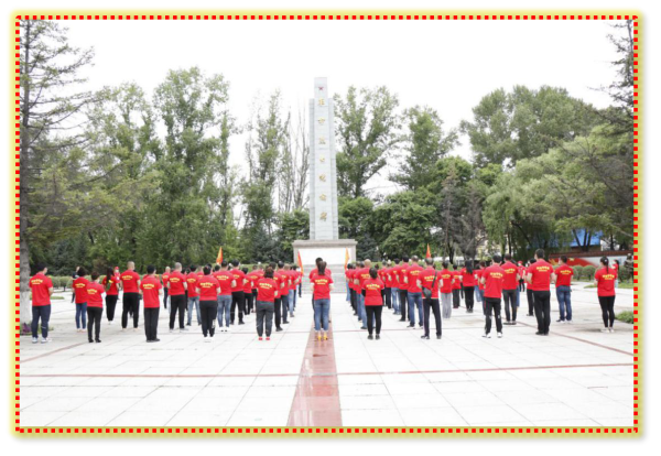 盛夏时节的烈士陵园松柏苍翠、庄严肃穆,巍峨的革命烈士纪念碑显得格外庄严肃穆,倾听松涛阵阵,追寻先烈足迹,党员们肃立在纪念碑前,表达对烈士们的无限追思和怀念。