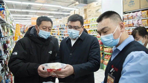检查中,区委副书记、区长邹长存强调,随着“春节”临近,人员流动性加大,聚集性活动增多,疫情防控形势更加严峻,要毫不放松抓好疫情防控工作。要求企业严格落实扫码、测温、戴口罩、通风消毒、限流各项防控措施,针对节假日及春节前期备年货等客流高峰提前做好应对措施,扩宽线上销售渠道,鼓励线上促销活动,与社区对接开通居家隔离人员所需物资配送服务,有效防止人员聚集。市场监督管理部门要强化食品管控,特别是进口冷链食品和山东久旭生物科技有限公司奶枣及国内外中高风险地区食品,要严把食品安全关。加大对重要民生商品的价格监督检查力度,加强重点时段、重点环节的市场巡查,严厉打击囤积居奇、串通涨价、哄抬价格等违法违规行为,满足人民群众消费需求,全力保障节日期间市场保供稳定,营造良好节日氛围。