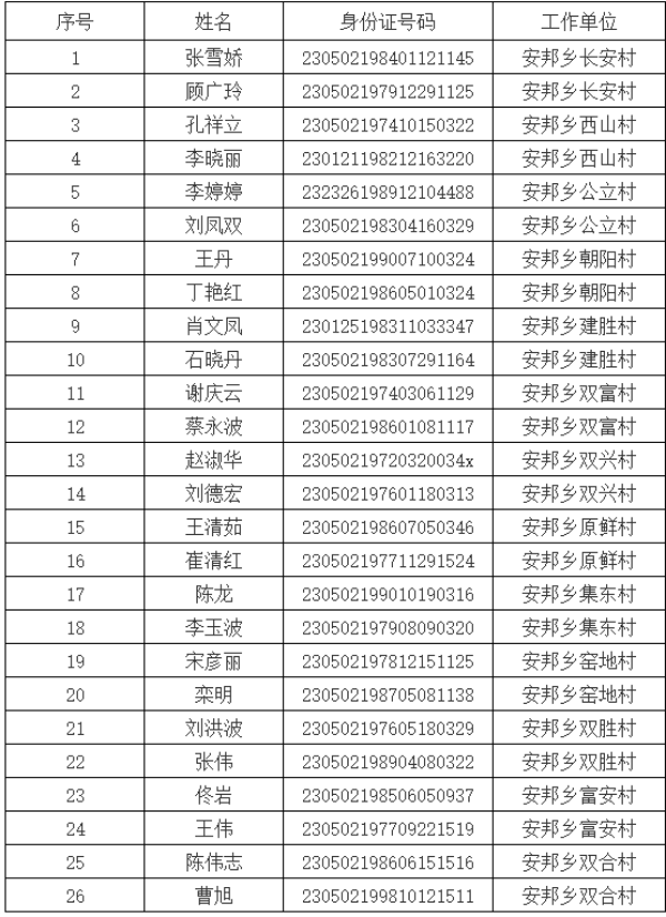 2021年尖山区乡村临时公益性岗位招聘拟聘用人员名单公示