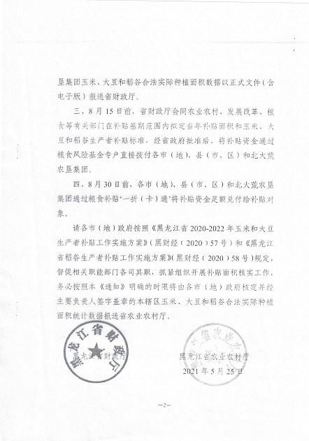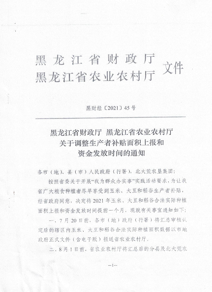 附件:1.《黑龙江省财政厅、黑龙江省农业农村厅关于调整生产者补贴面积上报和资金发放时间的通知》